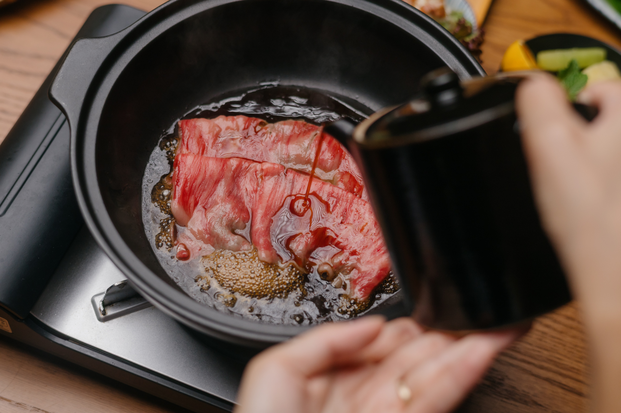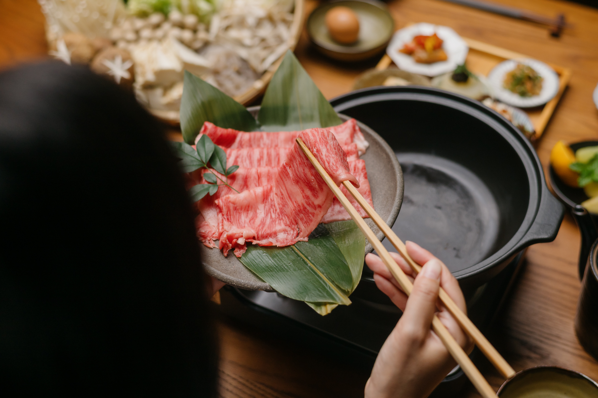 若狭の恵みが育む美味しいお肉と季節野菜をいただく山のすき焼き鍋セット。お肉を「若狭牛」と「若狭鹿」の2種類のプランからお選びいただき、季節の小鉢料理など若狭の自然の恵みや食文化を感じていただけるお料理です。※2025年11月〜2026年2月限定